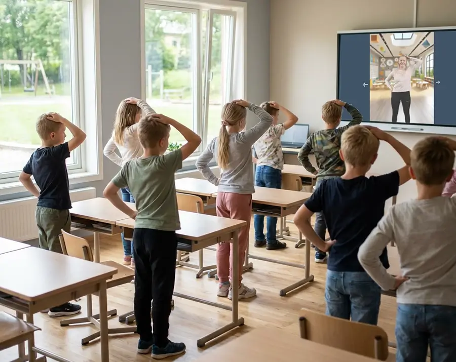 Start a short, guided movement session on any screen — phone, tablet, or classroom display.
