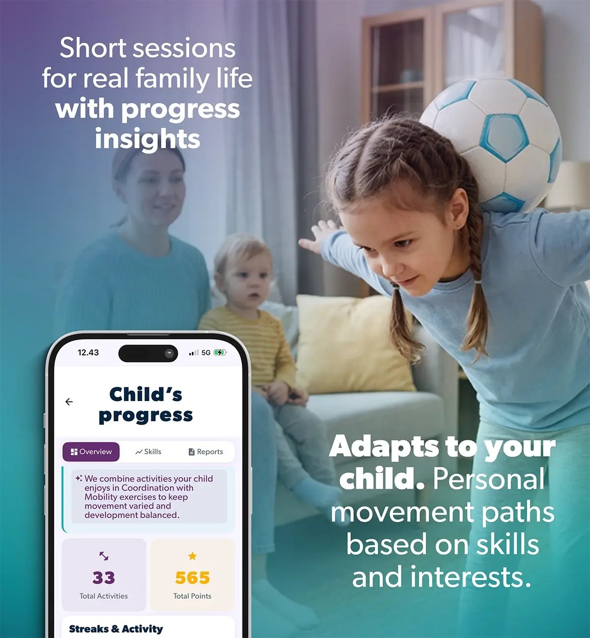 Siblings can use the same app — but follow different challenges, levels and movement styles.